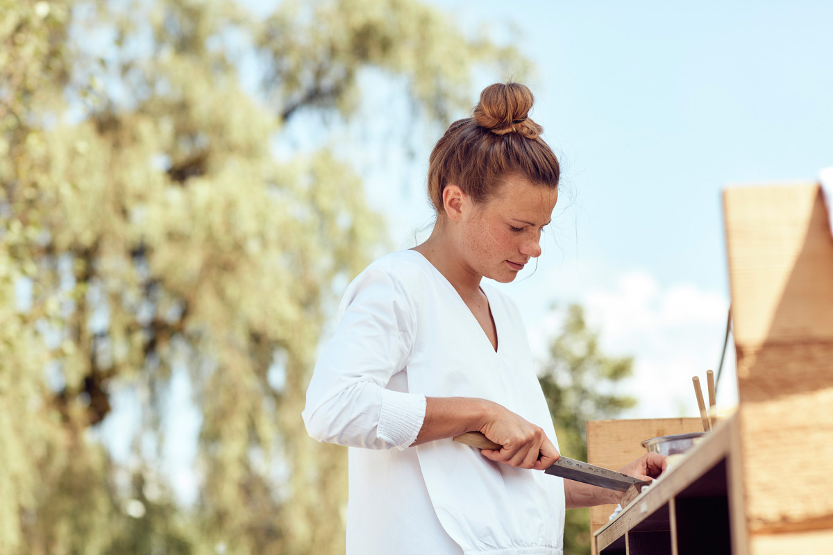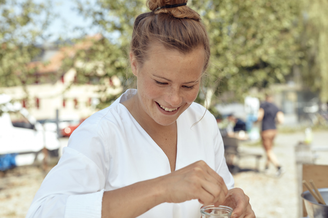 Angefangen hat alles vor ungefähr zwölf Jahren mit einem Kochbuch von Haubenköchin Johanna Maier. „Das schöne Essen auf den Bildern hat mich fasziniert“, sagt Milena. Diese Faszination sollte sie nicht loslassen. Sie kochte für Familie, Freunde und neben dem Studium (zwei Semester Jus, zwei Semester Kunstgeschichte), das sie bald aufgeben sollte: „Ich hab mich zerrissen gefühlt und dachte mir: Du musst dich entscheiden,“ erzählt Milena. Sie entschied sich für das, was ihre Intuition sagte. Und der folgt sie noch immer – ob nach Tokio, auf eine dänische Insel oder zu Veranstaltungen wie der Feldküche oder dem FAQ Bregenzerwald, wo sie ohne Strom und Gas Wildtiere verarbeitet oder Waldameisen frittiert, die dann auch von Vegetariern gegessen werden.