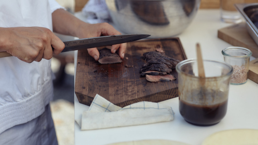 Das waren bisher die Auslandsstationen der 24-jährigen Bregenzerwälderin. In Japan lernt sie innere Ruhe, Schneiden im Takt und Disziplin. Sie erfährt, was es bedeutet im Moment zu bleiben, wie wichtig es ist, Perfektion als Anspruch zu sehen und wie sich Chaos durch strukturiertes Arbeiten vermeiden lässt: „Ein Japaner will nie vor einem Problem stehen, er plant alles durch und dadurch läuft es in der Küche sehr ruhig ab,“ erzählt Milena. „Deshalb ist Tokio für mich eine stille Stadt, viel stiller als der Bregenzerwald.“ Auf der dänischen Insel Bornholm arbeitet sie im Kadeau, „ein verrücktes Lokal von ganz jungen Köchen, die den Geschmack ihrer Insel konzentriert auf den Teller bringen wollen“. Das ganze Team, bunt durchgemischt aus allen Ecken der Welt, wohnt gemeinsam am Bauernhof und arbeitet Tag für Tag im Strandlokal, „das waren zwei Monate geballte Leidenschaft fürs Kochen“, sagt Milena. In der Toskana, im Val de Cecina, lernt sie, Fleisch zu verarbeiten, „vom Aus-der-Decke-Nehmen des Tieres bis zum Feder-Rupfen“. Sie macht sich mit der Anatomie von Fasanen und Wildschweinen vertraut und verwandelt ihre Organe in Abendessen. Sie arbeitet überhaupt sehr gerne mit Fleisch, „das kommt wahrscheinlich daher, dass meine Urgroßeltern Metzger waren“, wie sie erzählt.