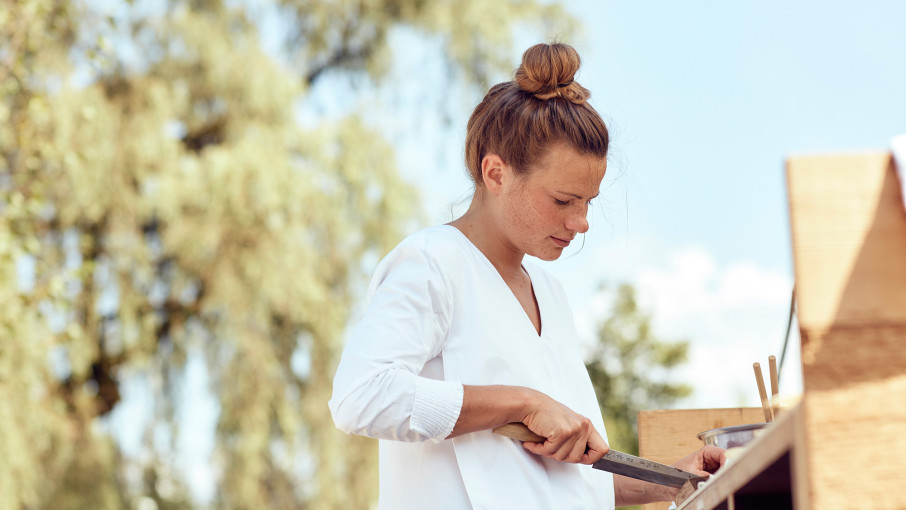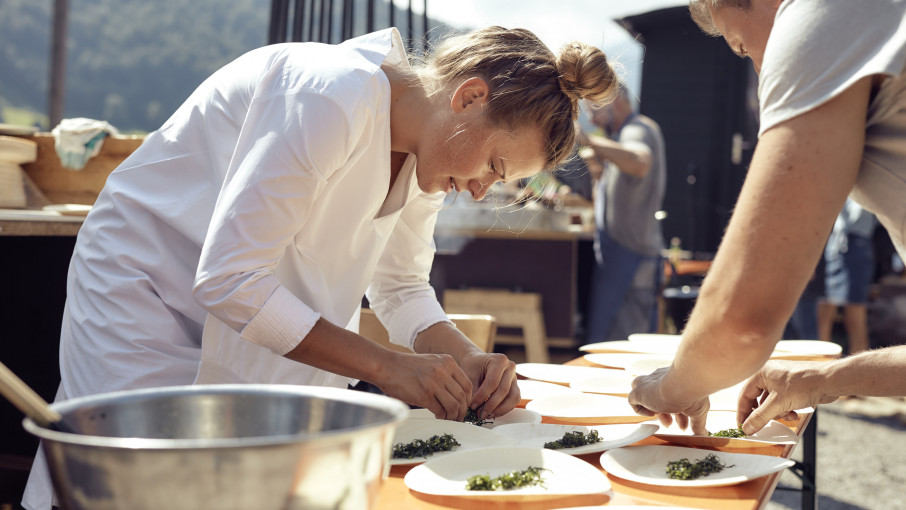 Tag 4 des FAQ Bregenzerwald, Gasthaus Jöslar: Milena hat soeben gemeinsam mit Koch Christoph Fink sechzig Menschen mit Vier-Gänge-Menüs bekocht. Ihr Part ist nun vorbei, sie darf Glückwünsche entgegennehmen: „Milena, das Beuschel, unglaublich!“ oder „Wie hast du die Knödel so hingekriegt“? Grundsätzlich mag Milena Reaktionen wie „Wow, das ist interessant“ oder „Ist zwar nicht mein Geschmack, aber war cool zu probieren“ am liebsten, gerade wenn sie neue Dinge probiert. „’Gut war’s’ – das ist mir zu wenig“, so die 24-jährige Vorarlbergerin.