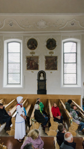 Seit zehn Jahren arbeitet Bernadette Rüscher im Angelika Kauffmann Museum in Schwarzenberg. Sie ist Spezialistin für Kunst und Geschichte des Bregenzerwaldes und gibt bei geführten Rundgängen tiefe Einblicke in das Zusammenspiel von Mensch und Natur in der Region. Teile ihrer Kindheit hat sie auf einer Alpe ohne Strom und fließendes Wasser verbracht – ein Grund mehr, warum sie sich dem Bregenzerwälder Bauern, Sozialreformer und Schriftsteller Franz Michael Felder (1839–1869) nahe fühlt.